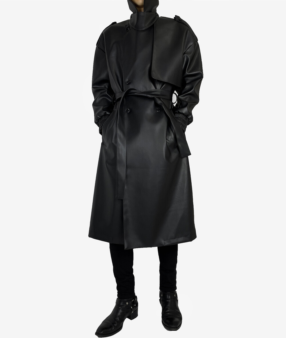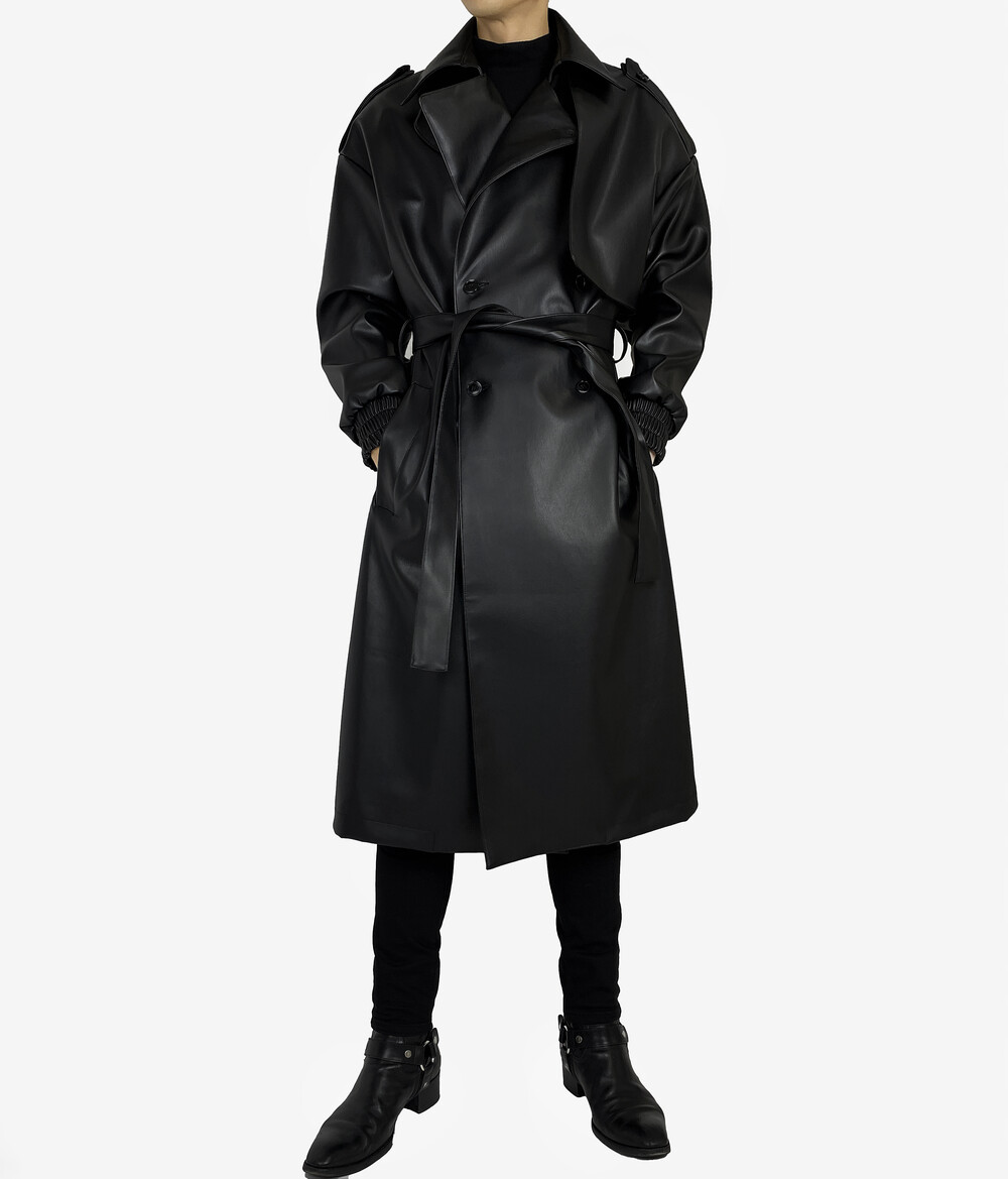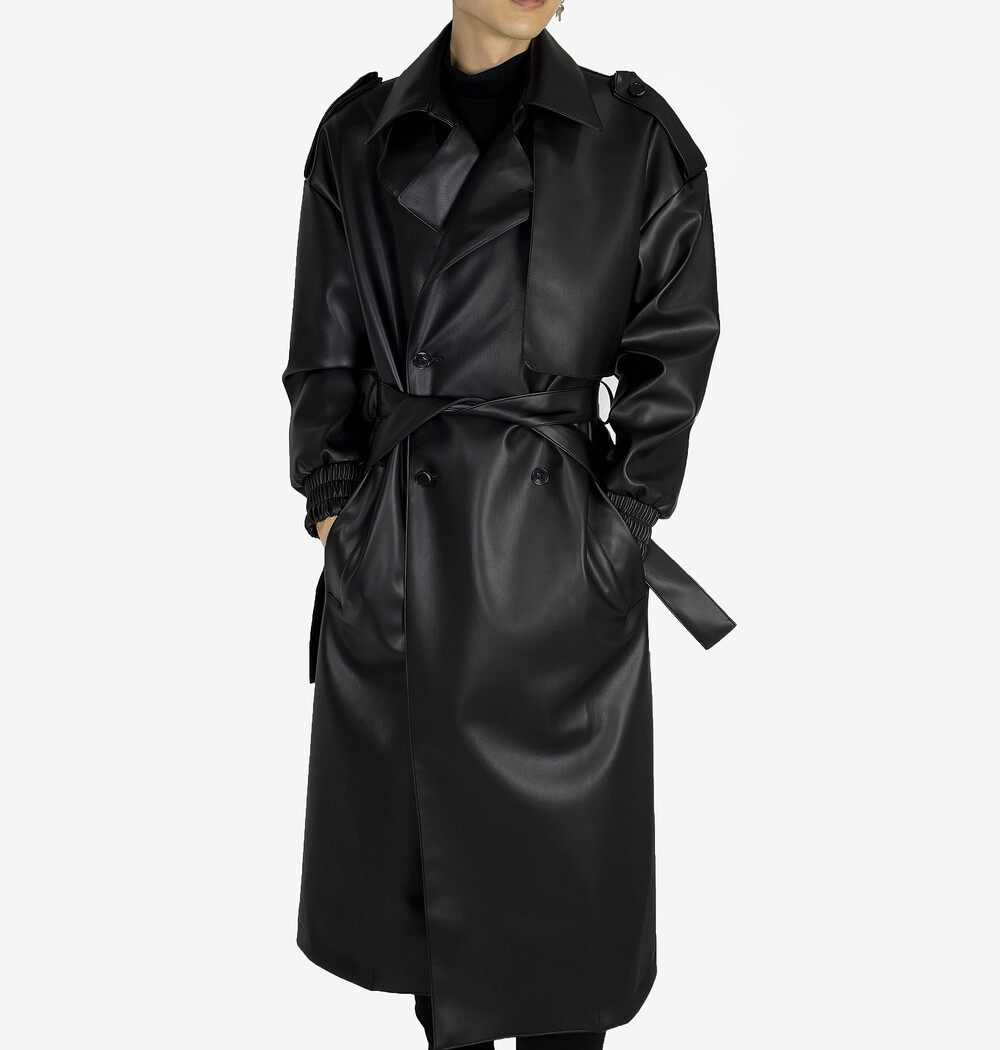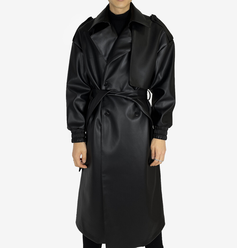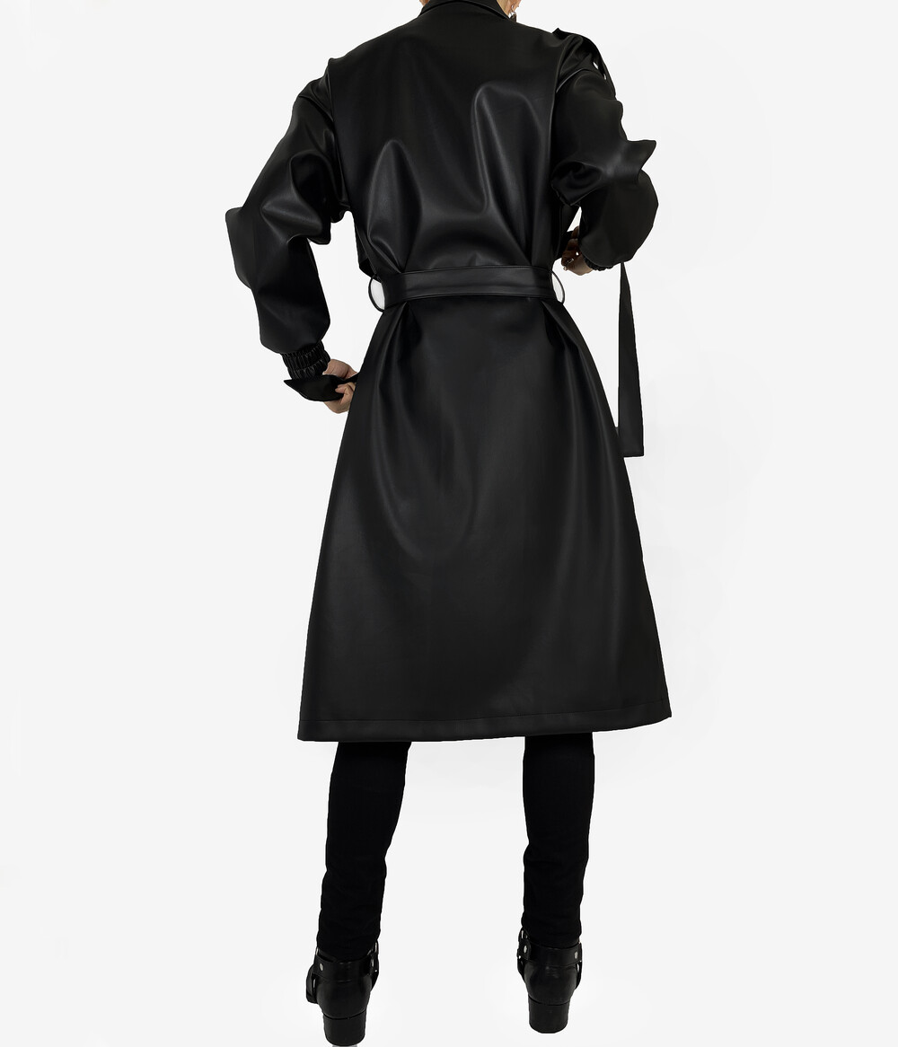 Belted epaulet leather coat