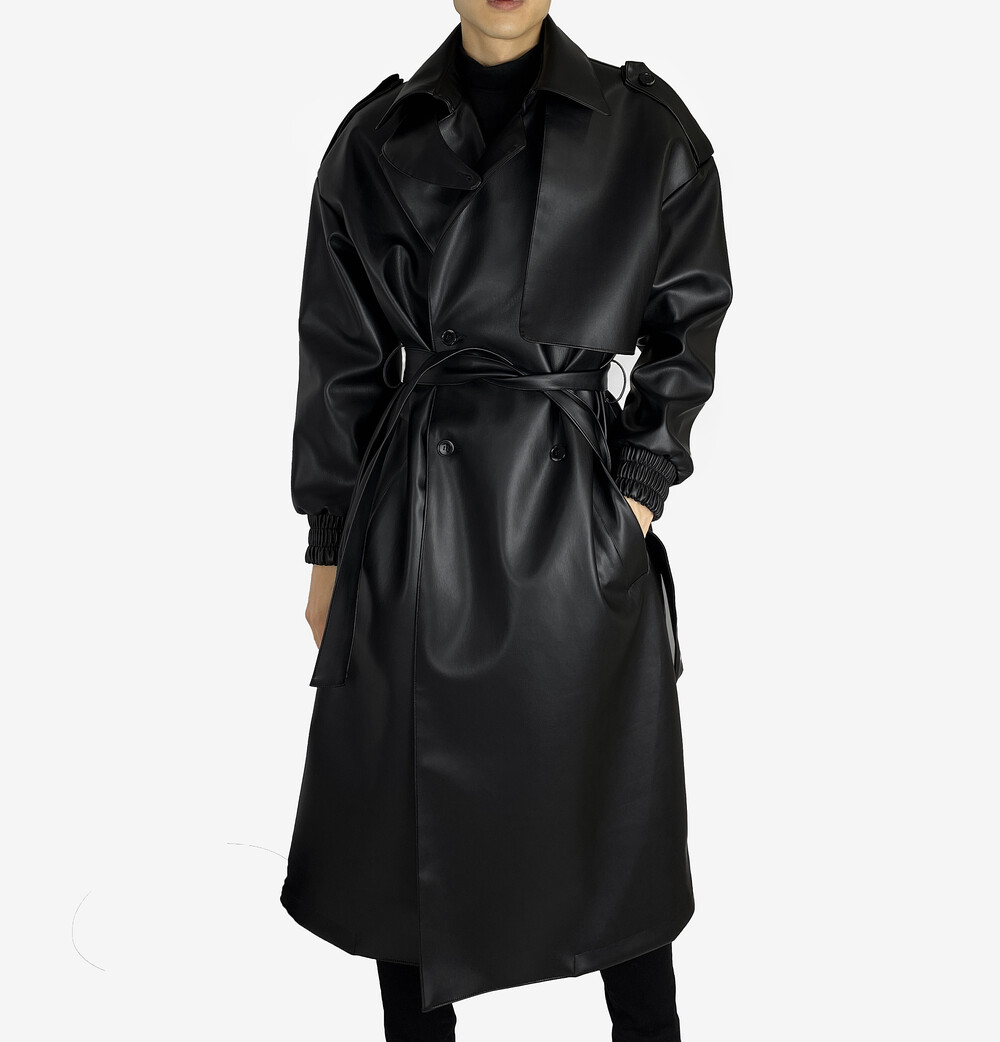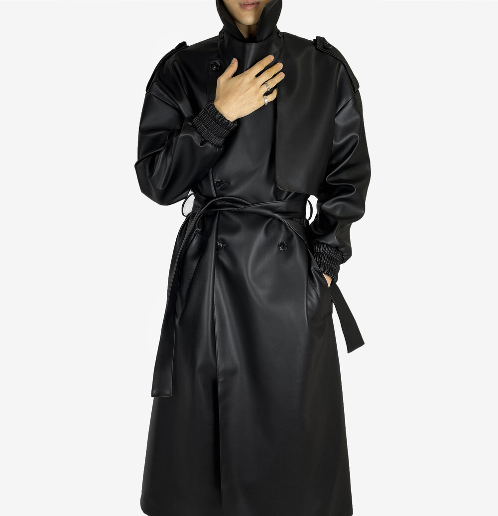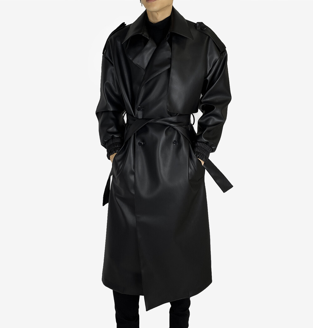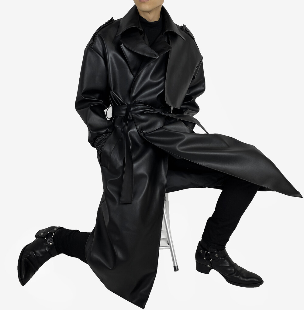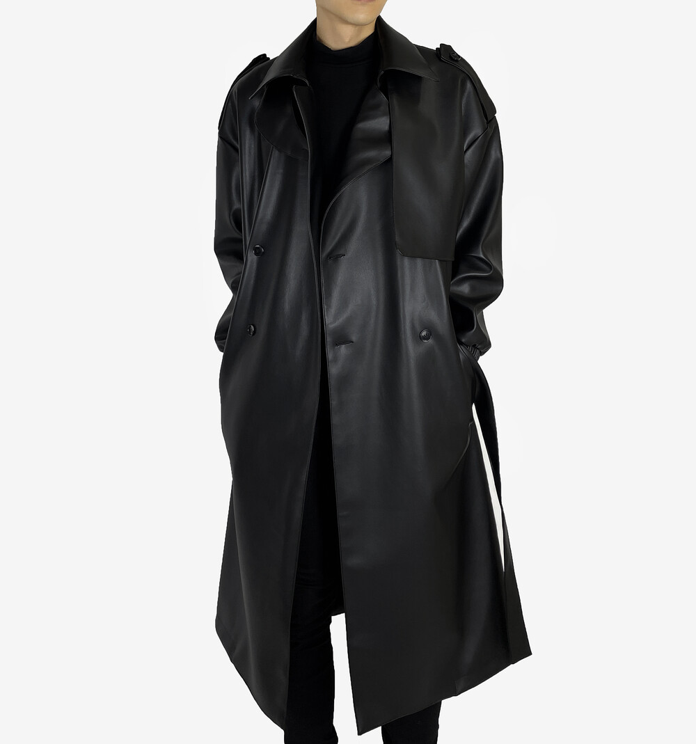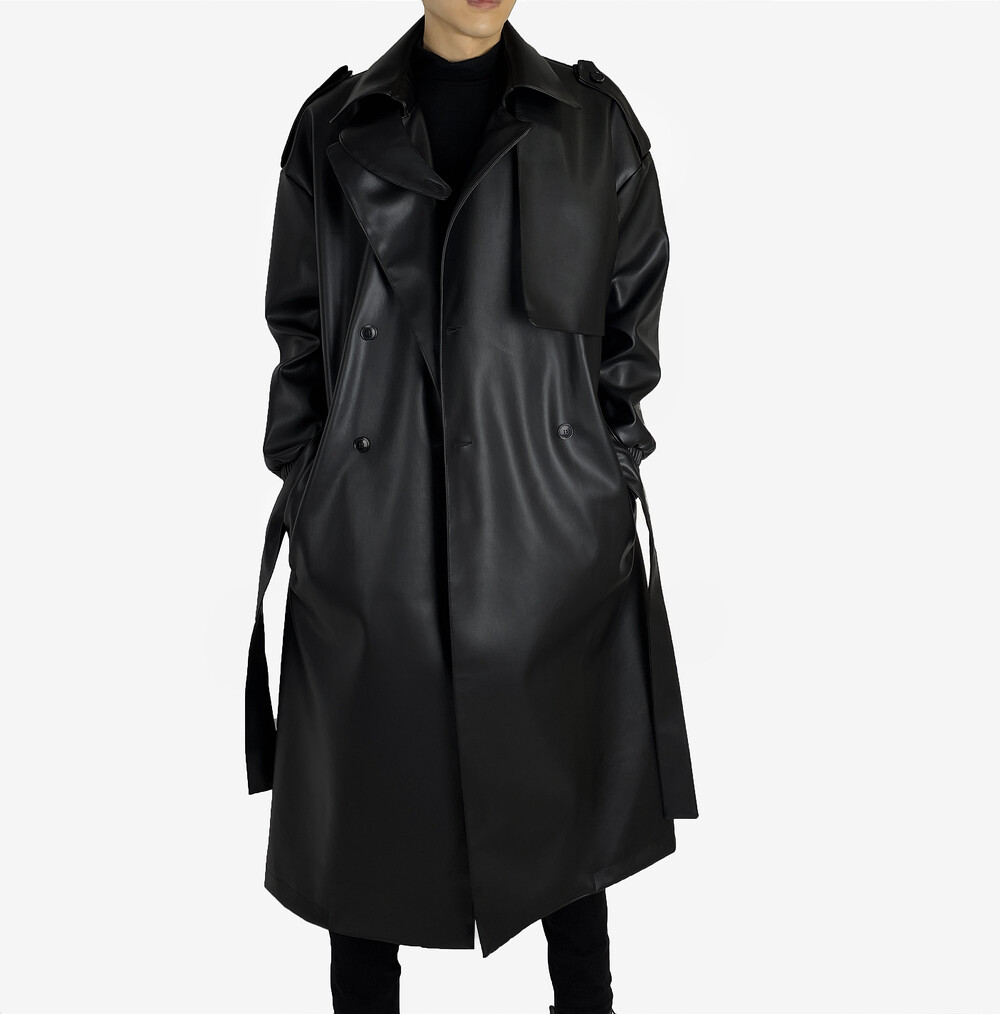 Belted epaulet leather coat