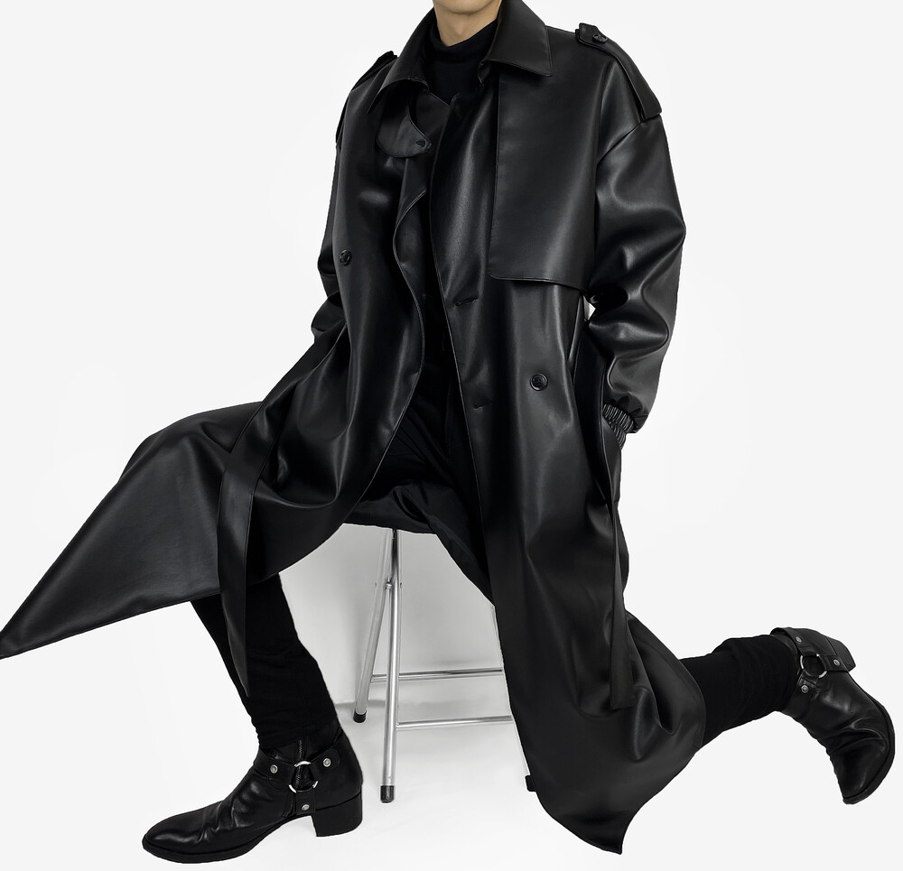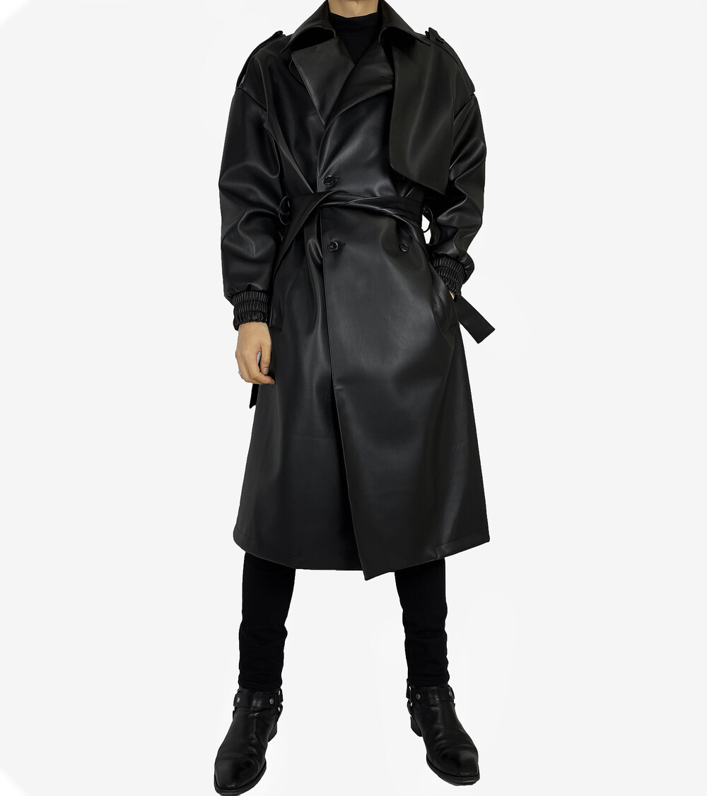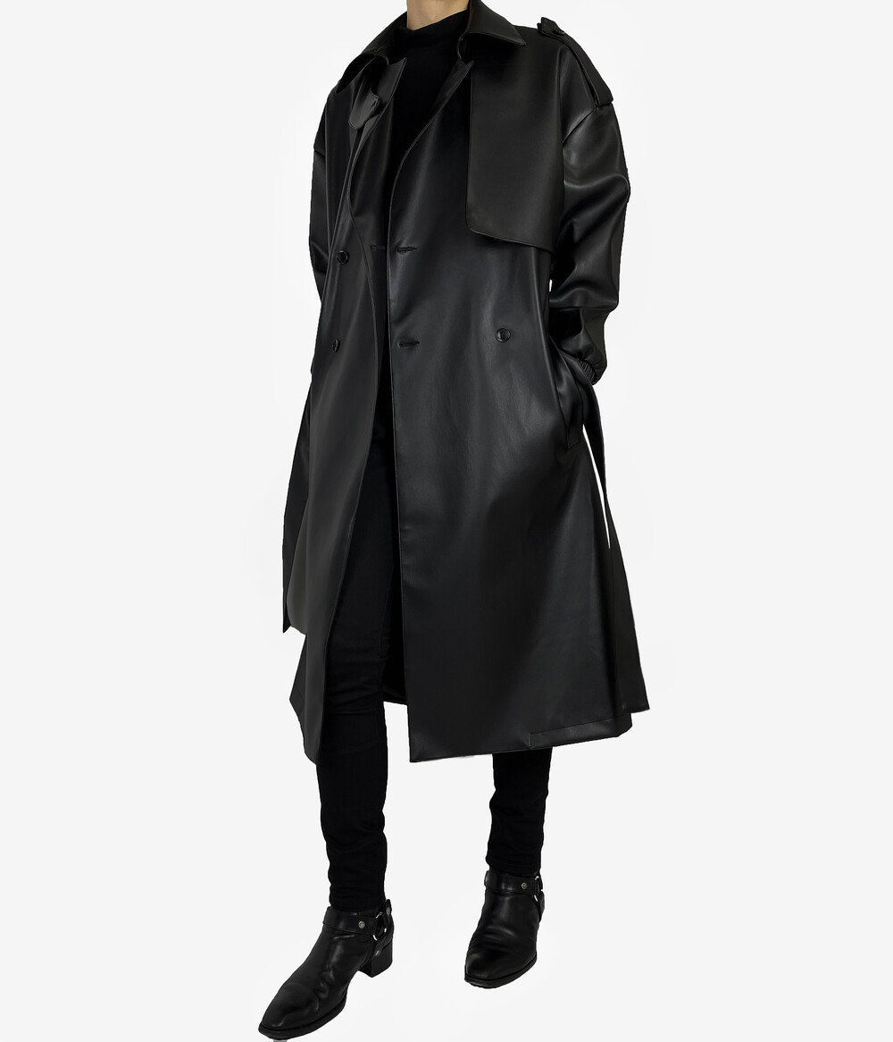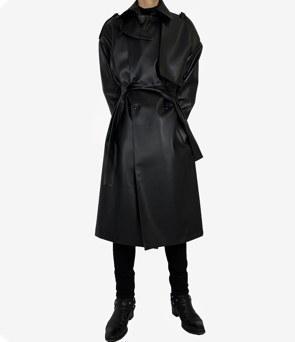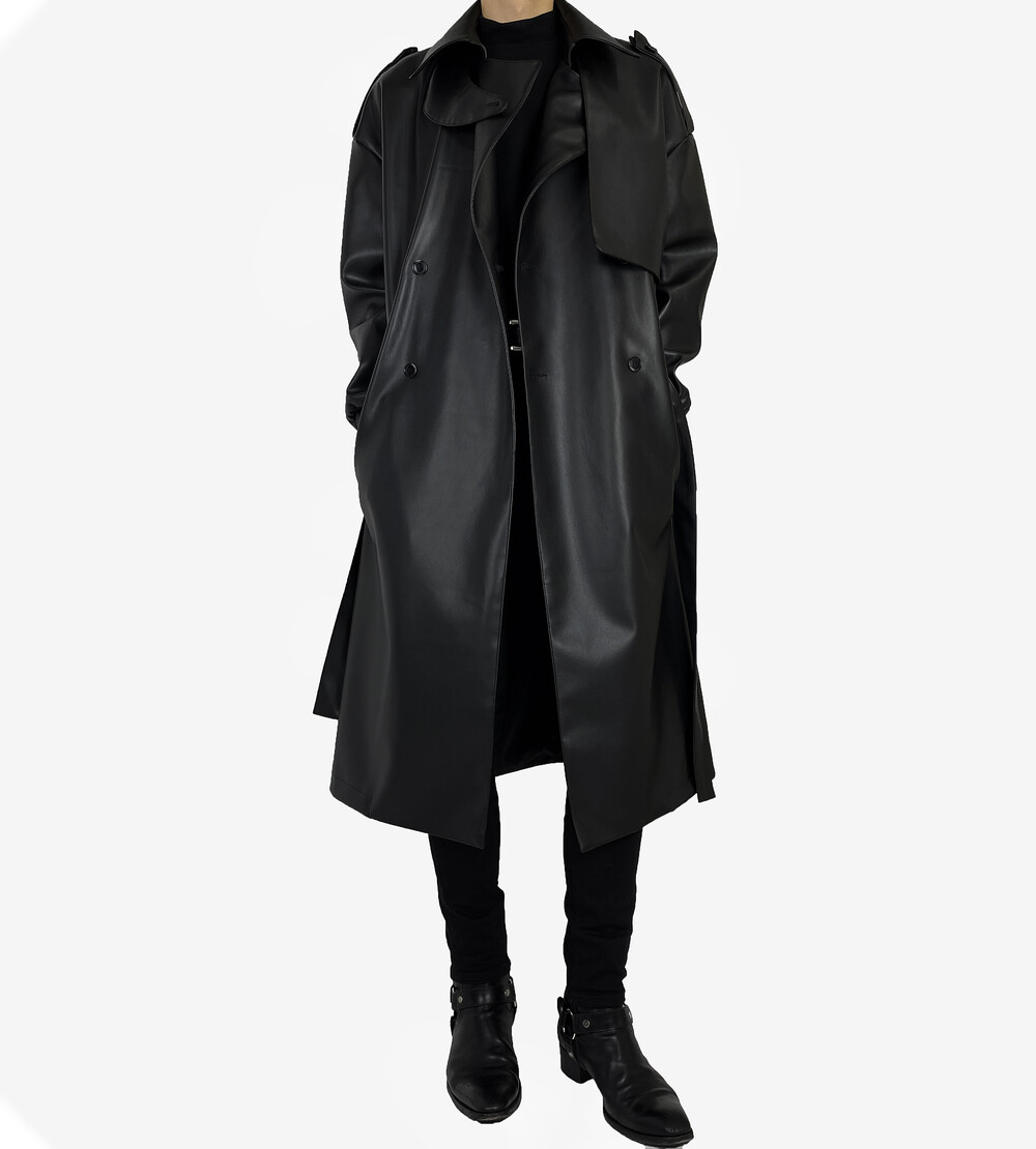 Belted epaulet leather coat