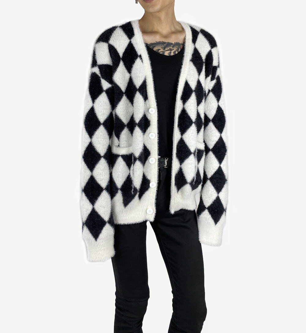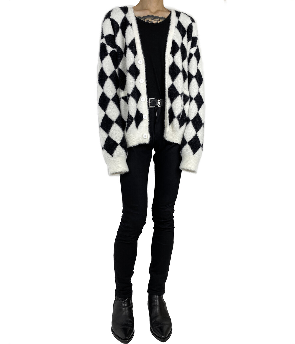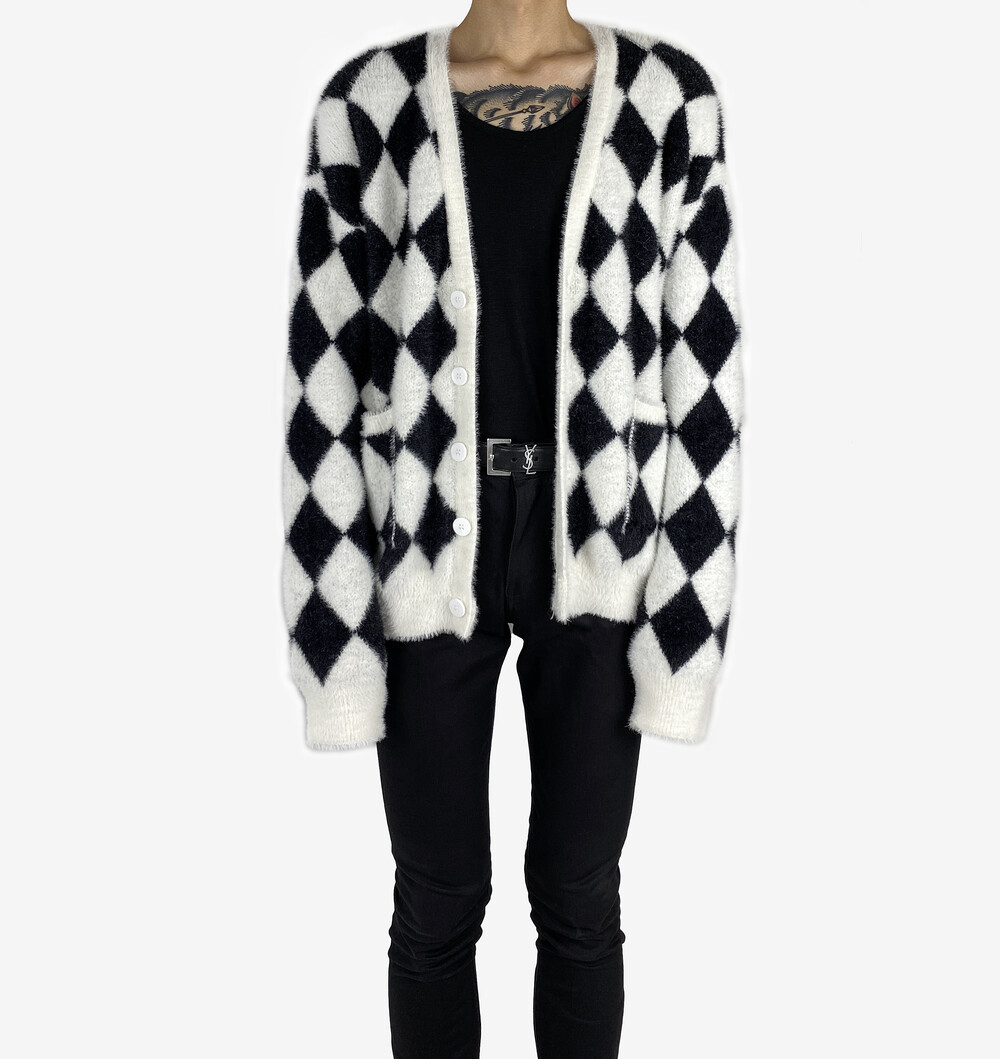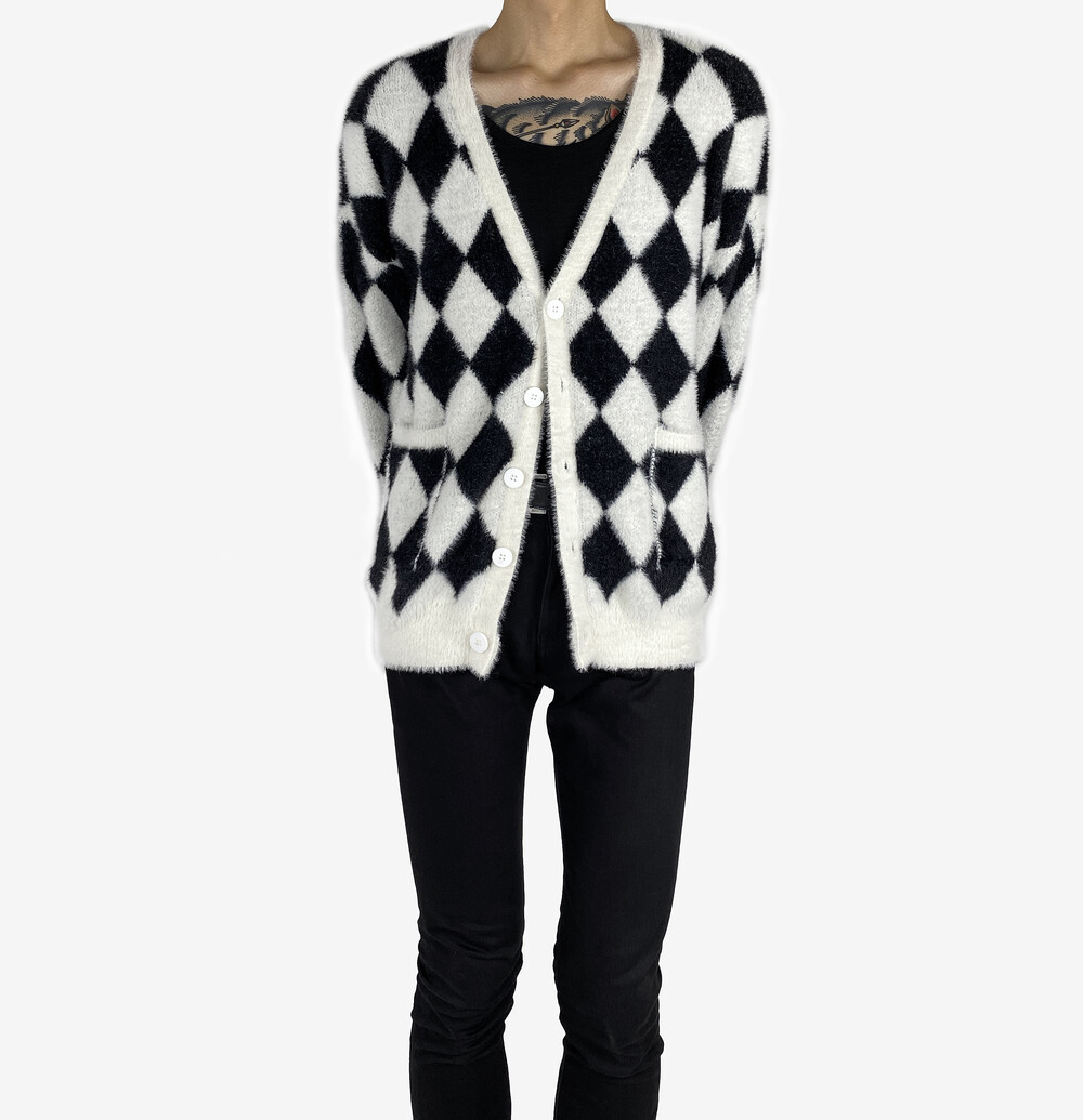 Mohair check fur cardigan