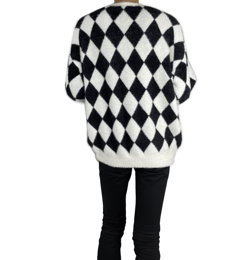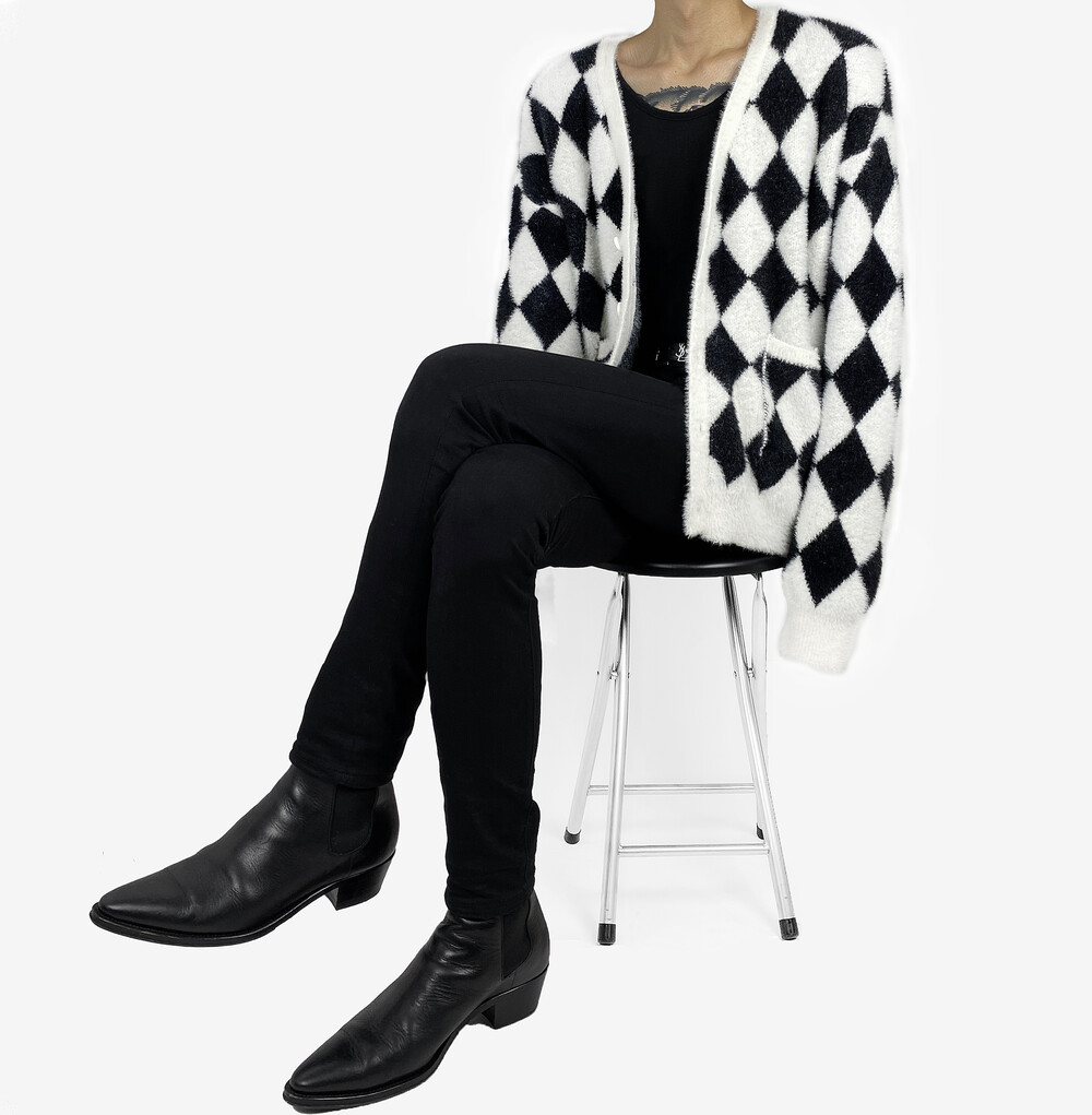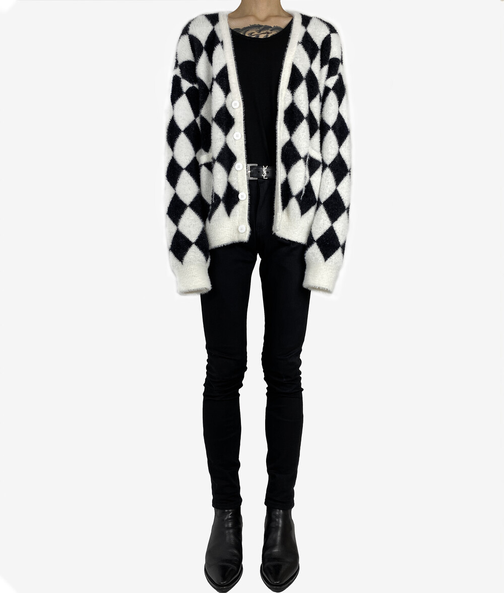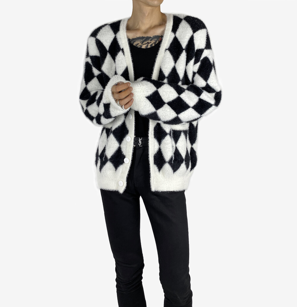 Mohair check fur cardigan